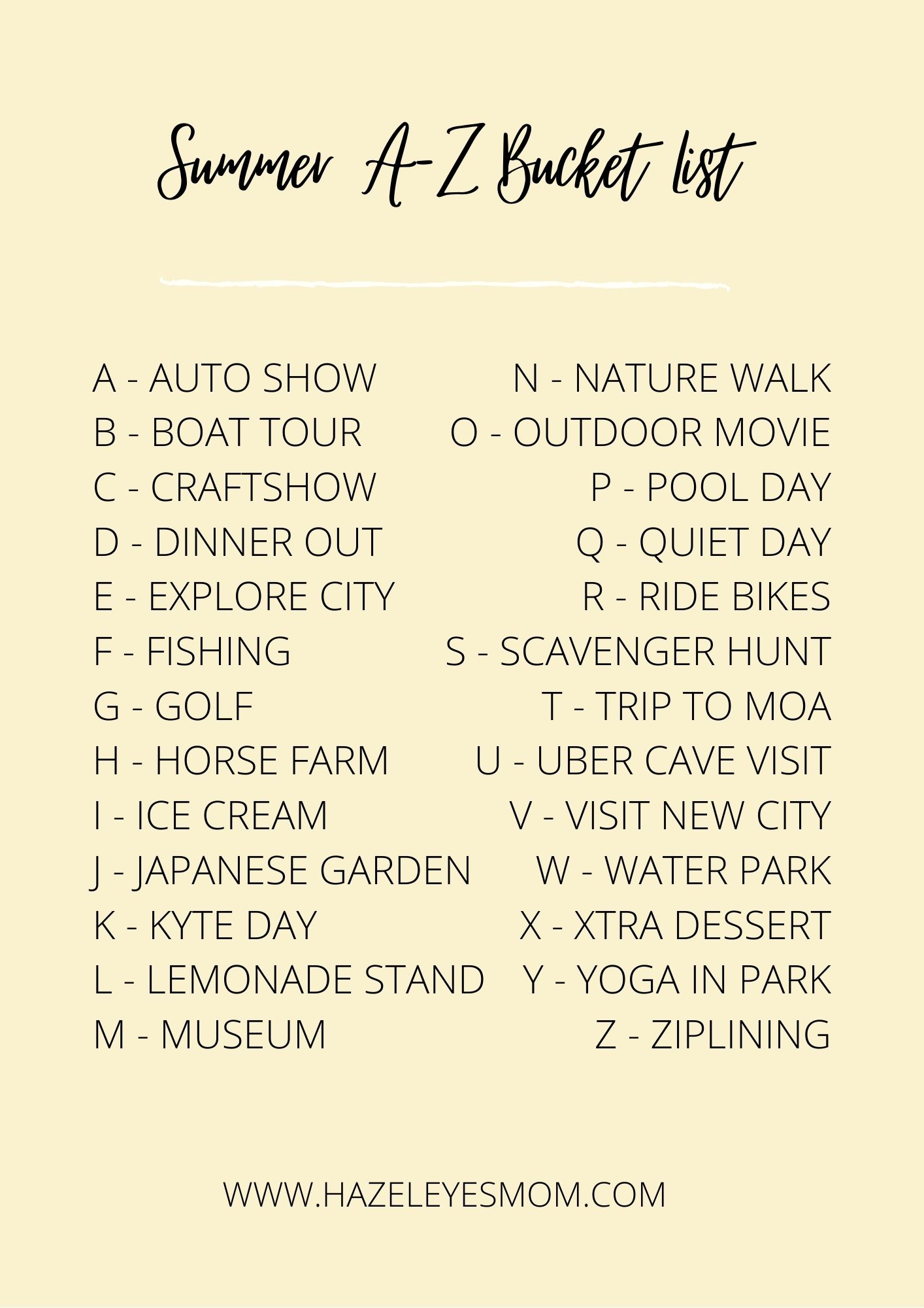 SUMMER A-Z BUCKET LIST 2021